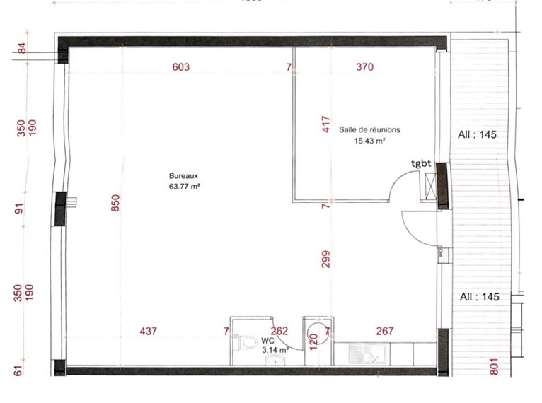 Les locaux, d’une surface totale de 82 m², se composent :