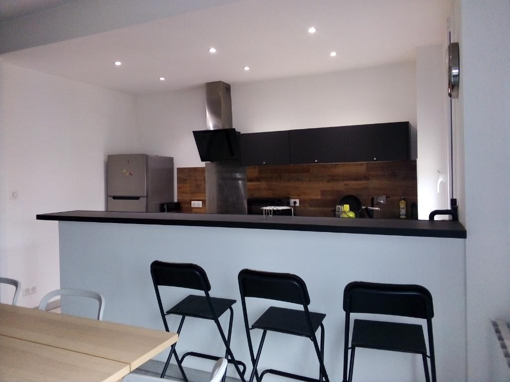 Composé d'un séjour/salon,1 cuisine américaine ouverte avec comptoir.