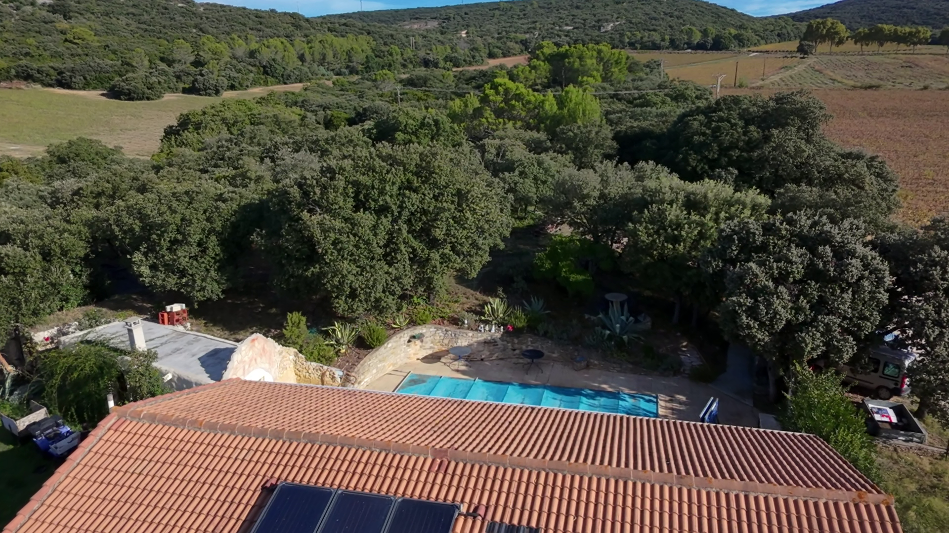 Cette résidence, est dotée d'une jolie piscine à l'abri des regards, d'une cave enterrée, d'un sauna et hamam, d''une cuisine d'été, d'un très grand atelier qui pourrait être utilisé comme espace professionnel ou pour créer un autre espace habitable entouré d'un grand terrain arboré et garrigue avec des petits coins discrets et intimes propices aux échanges, à l'activité artistique et à la lecture.