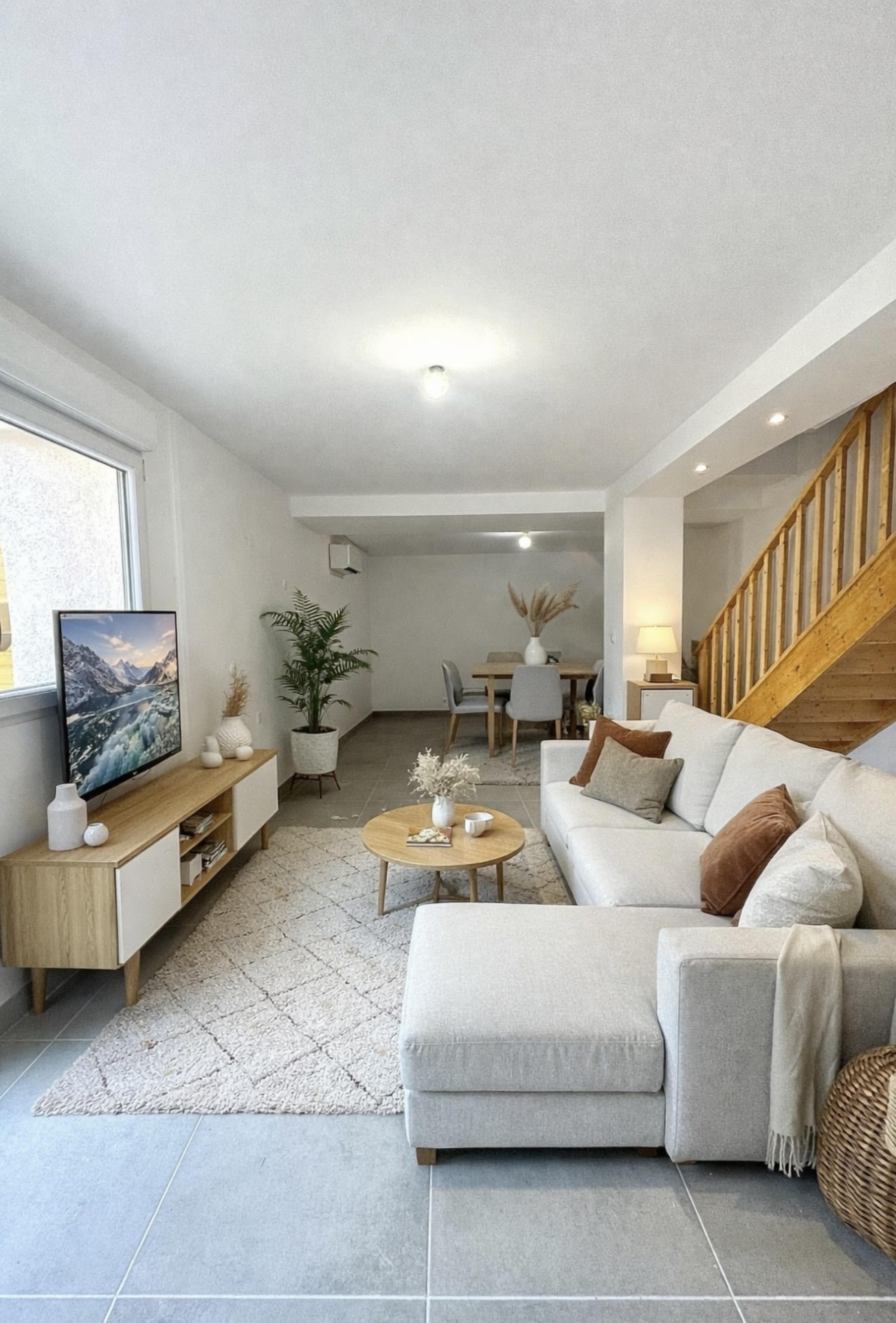 Au rez-de-chaussée, vous trouverez un séjour cuisine de 34m2, un cellier de 4m2 avec un WC et une cour de 10m2 idéale pour déjeuner en plein air.