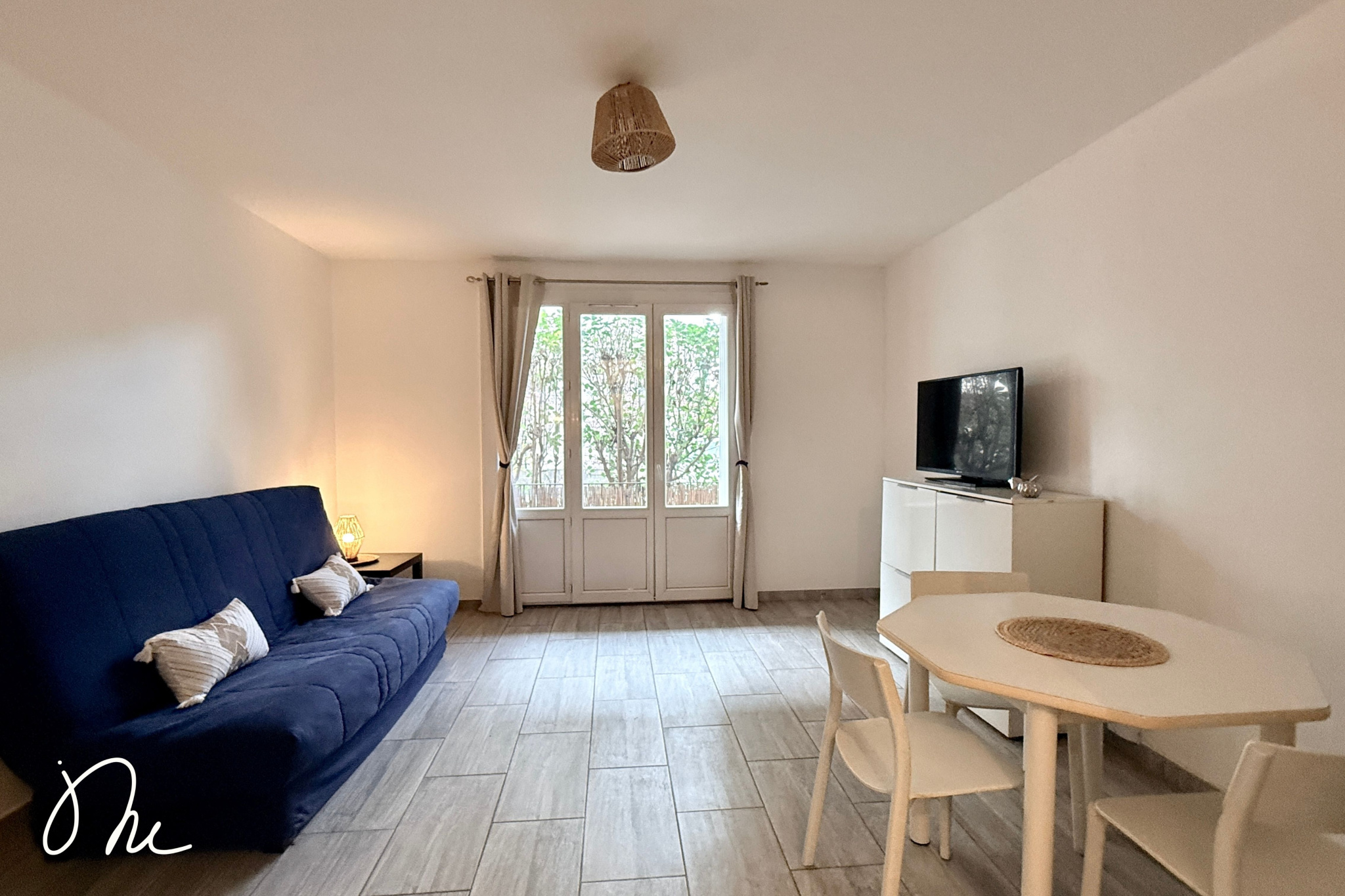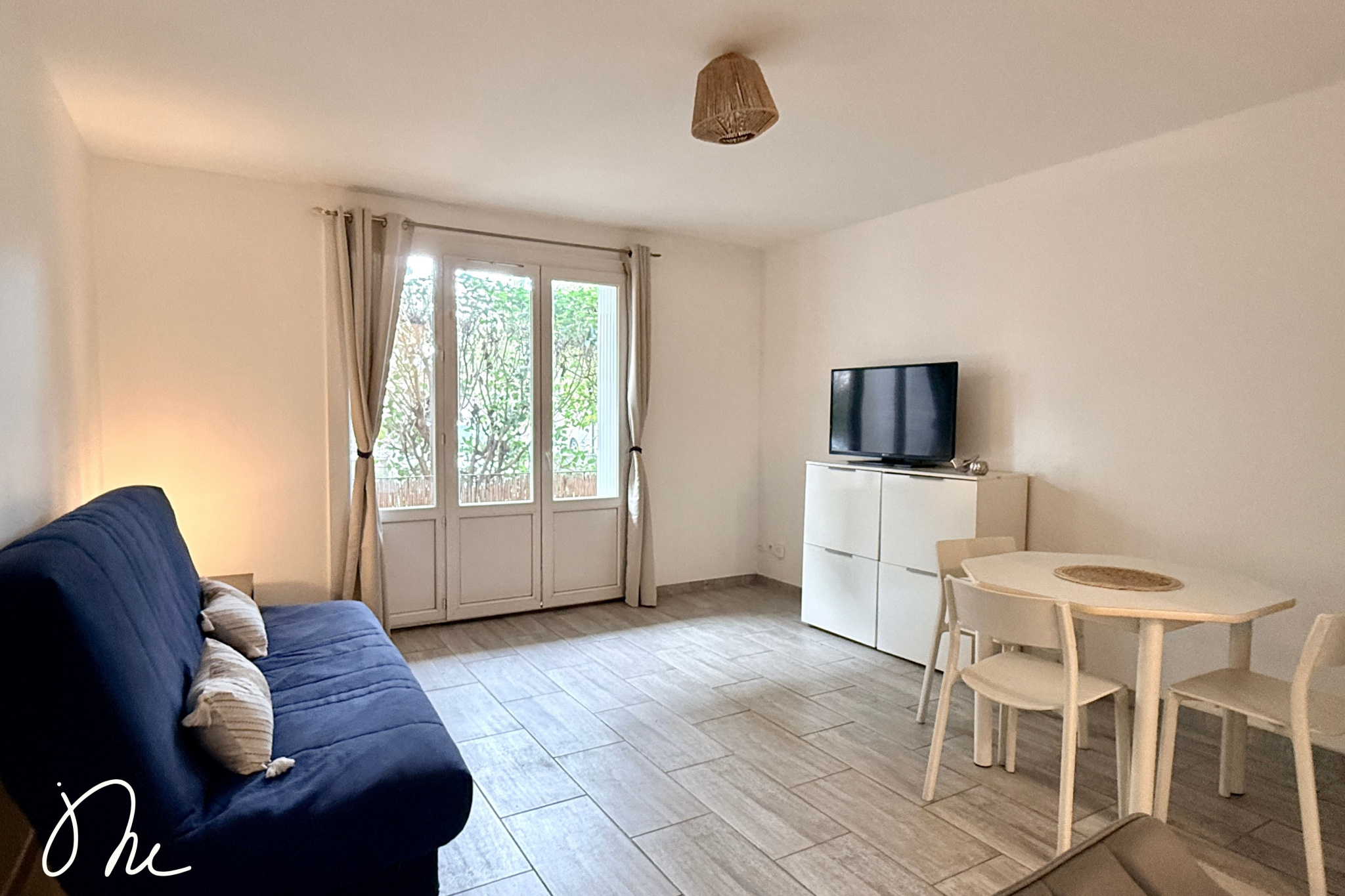 L’entrée ouvre sur une pièce de vie exposée sud, lumineuse, entièrement repeinte récemment.