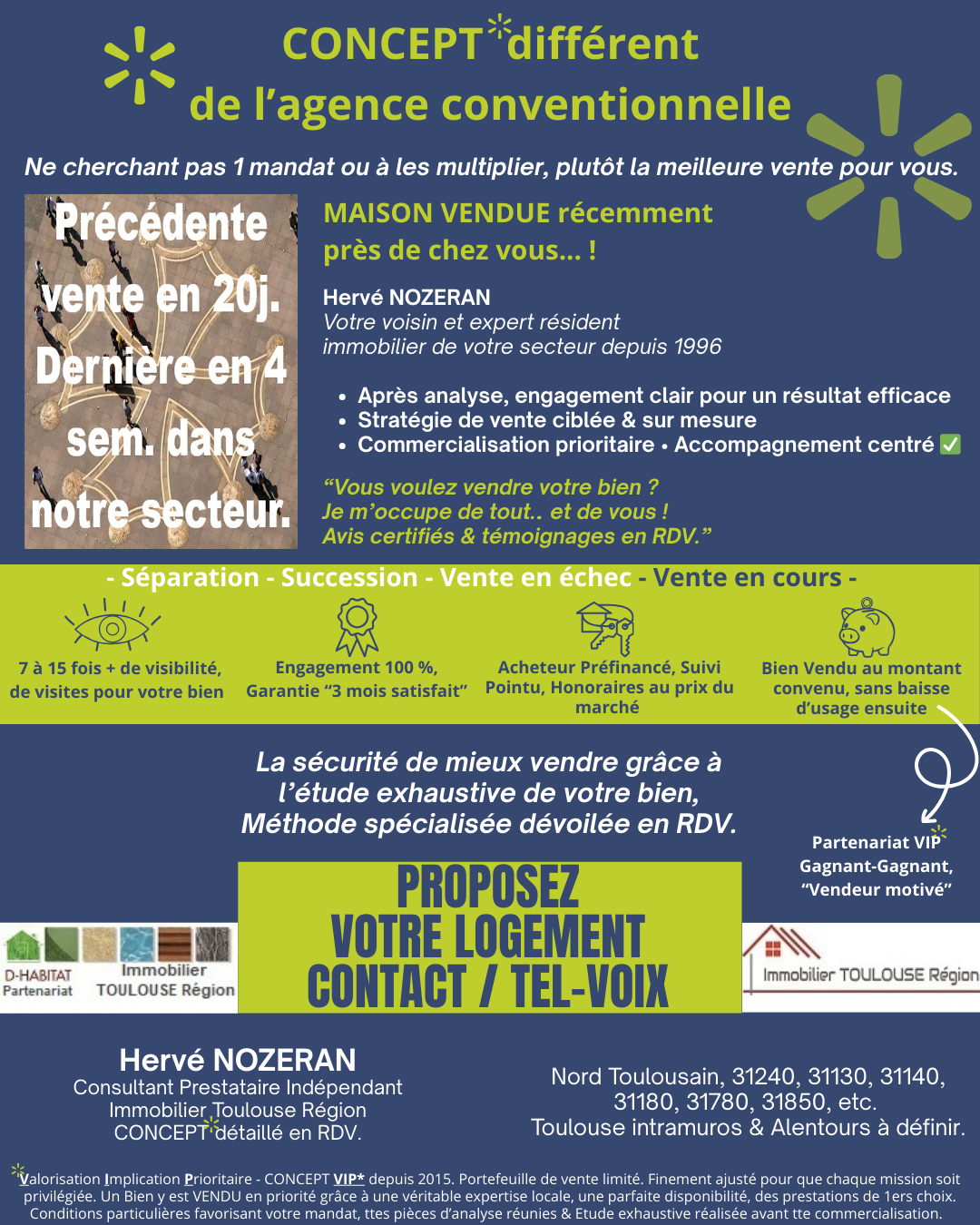 H NOZERAN - Consultant Prest Indép Immobilier TOULOUSE Région - Collab DHabitat pr étude exhaustive-expertise locale différente d’ag & réseau classique - Concept *Valorisation Implication Prioritaire.