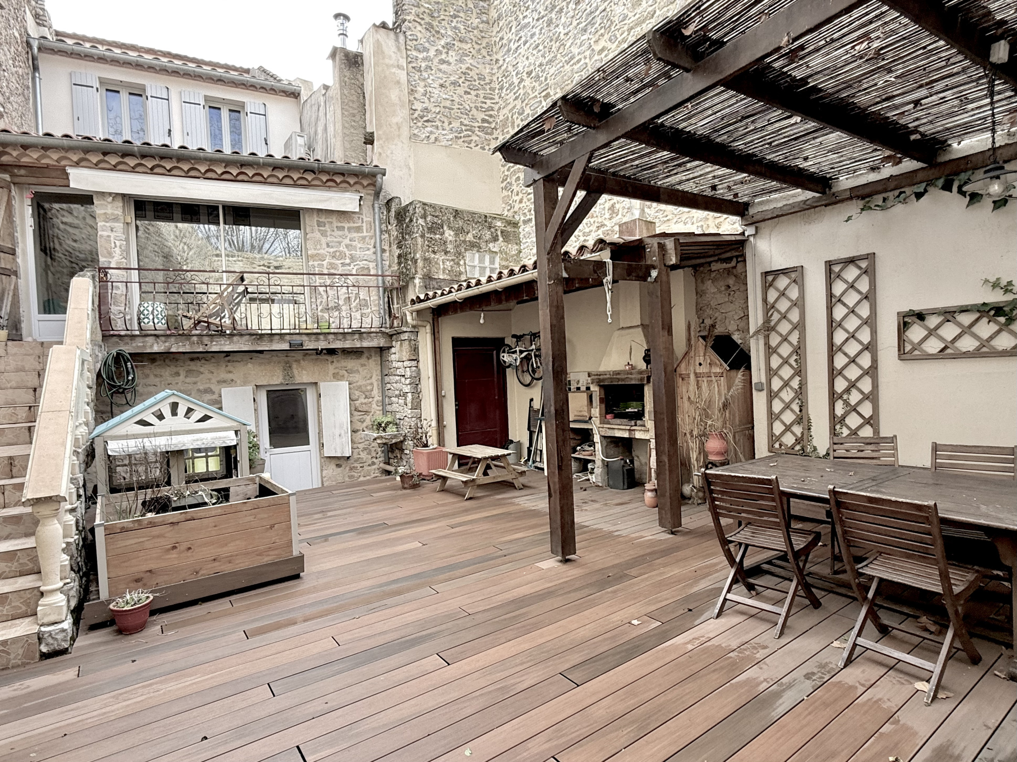 Son atout : un exterieur de 75 m² déjà aménagé avec sol en bois, pergola et barbecue. Vous n'avez plus qu'à lancer les invitations :)