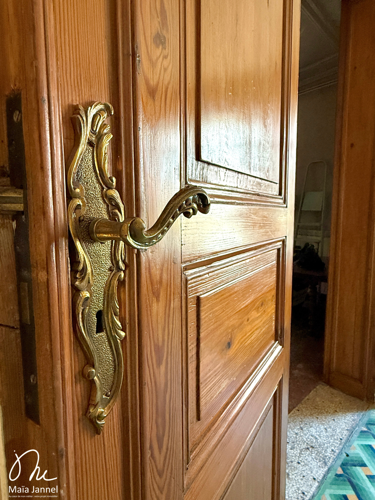 Chaque pièce a son charme : salon et séjour avec cheminée en marbre, de très belles doubles-porte en bois, des carreaux de ciment du début du XXème siècle ; et enfin, avec ses grandes fenêtres, cette maison est très lumineuse.