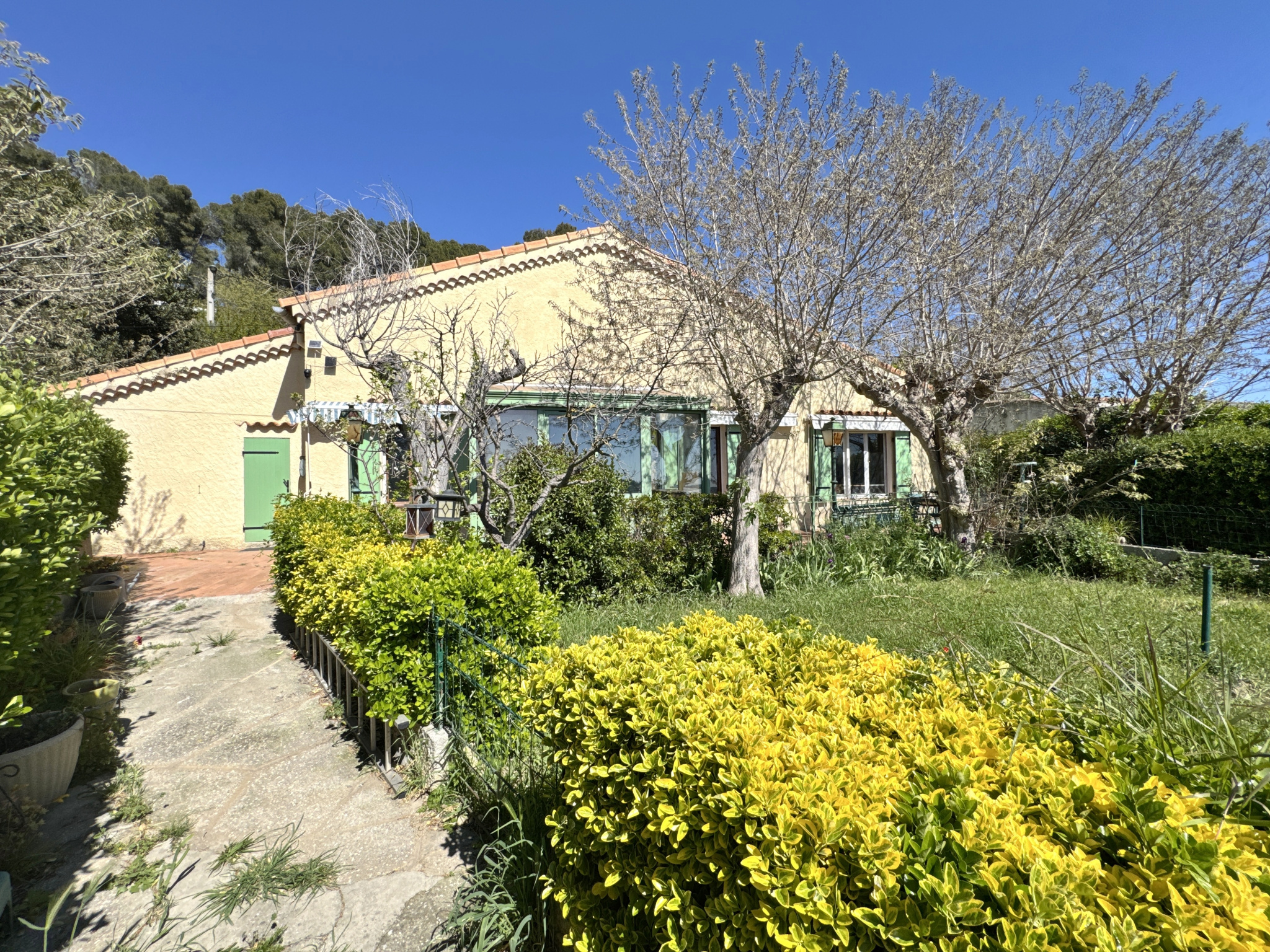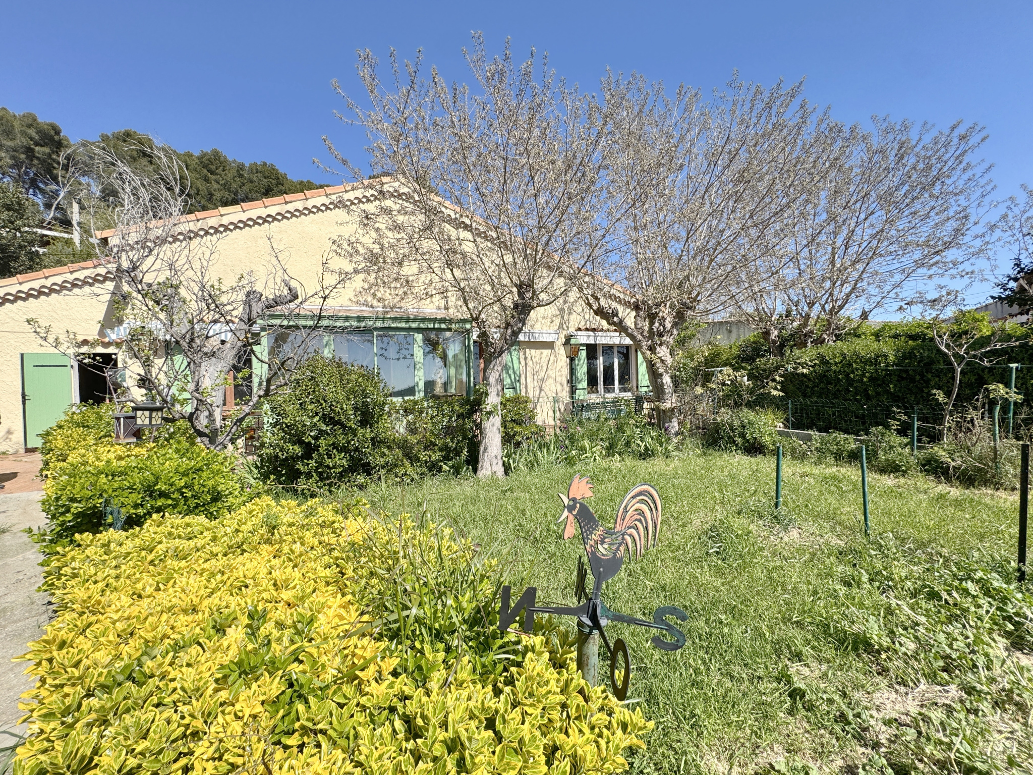 Cette Maison T3 de Plain-pied à rénover vous propose un cadre exceptionnelle avec une vue a 180° étang et village , au calme et completement dégagée et a l'abris du Mistral !!!!!
